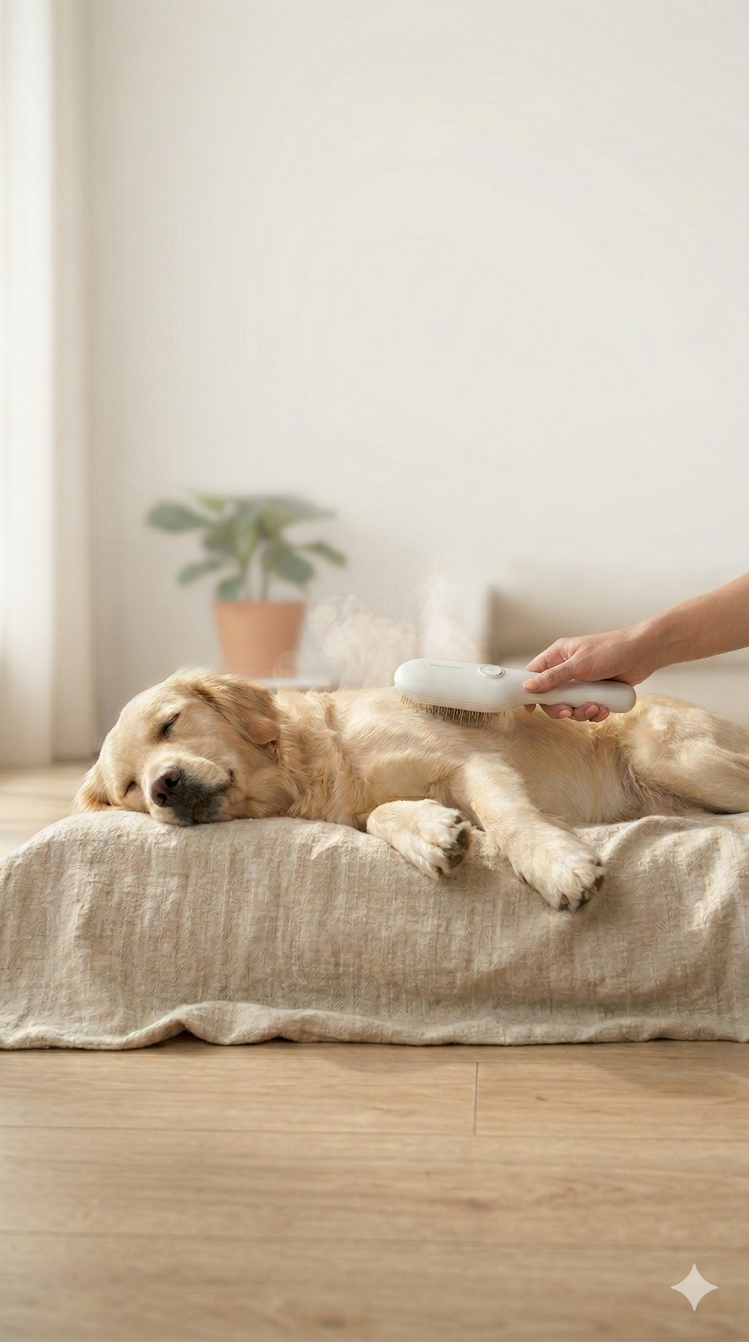 La brume tiède emprisonne les poils sur la brosse. Je n'ai plus besoin de passer l'aspirateur après chaque brossage.